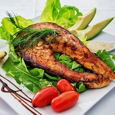 Grilled local catch, calamari, and prawns with citrus-herb dressing